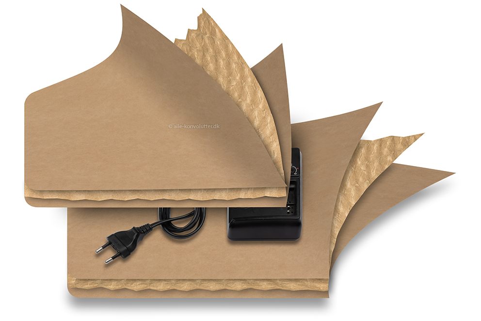 - 3-lags papir; mellemlag af 100 g brunt kraftpapir med boblestruktur af papir